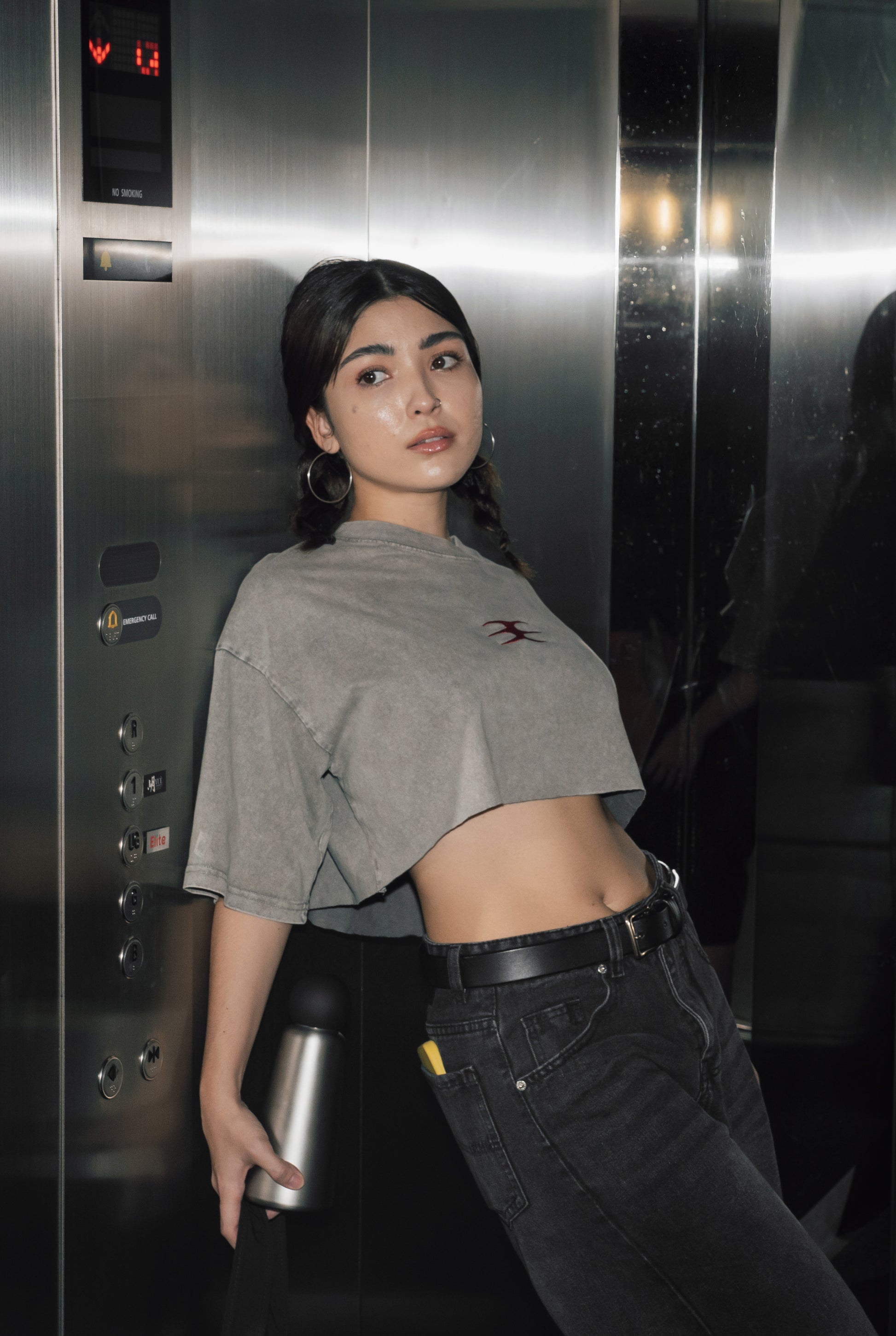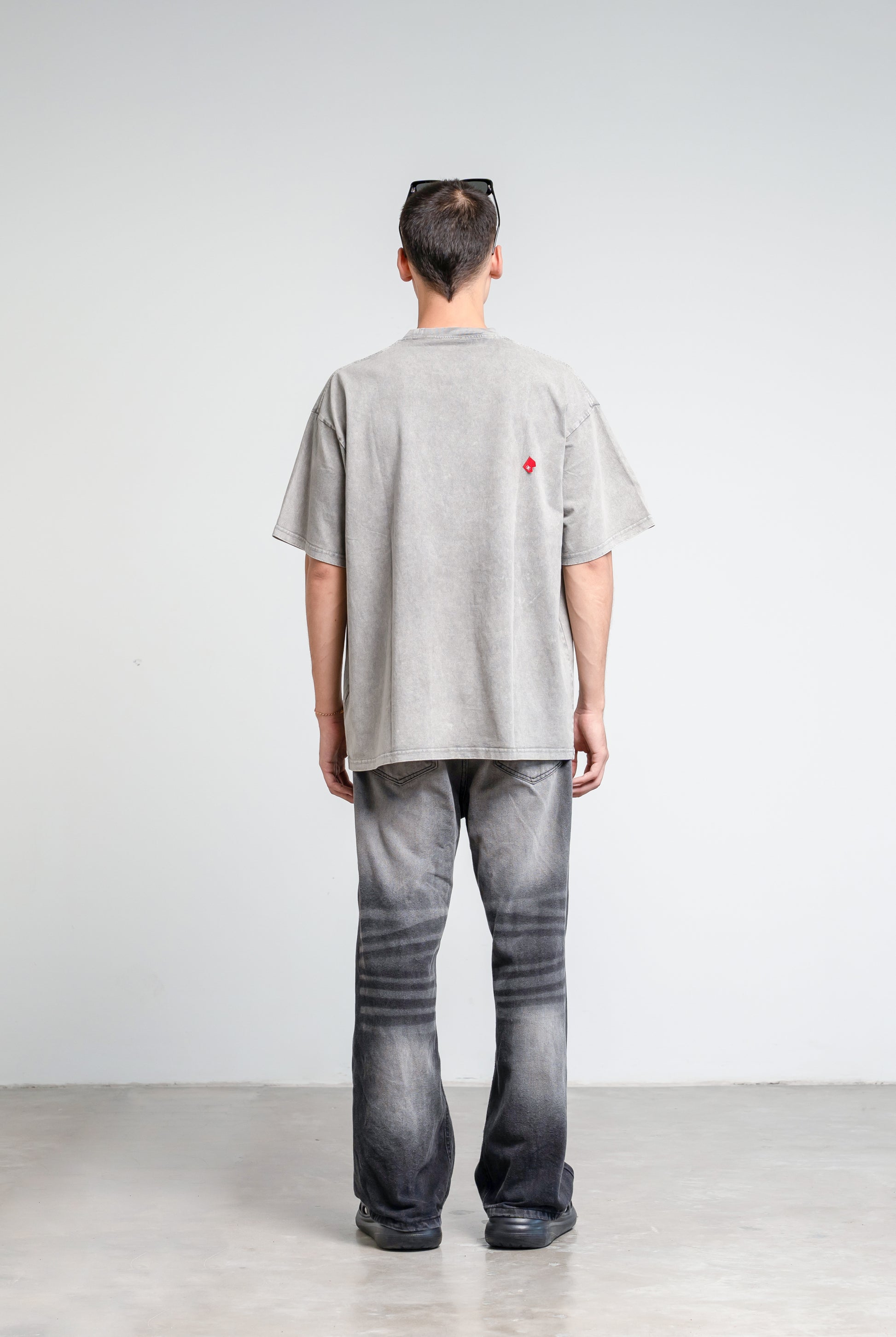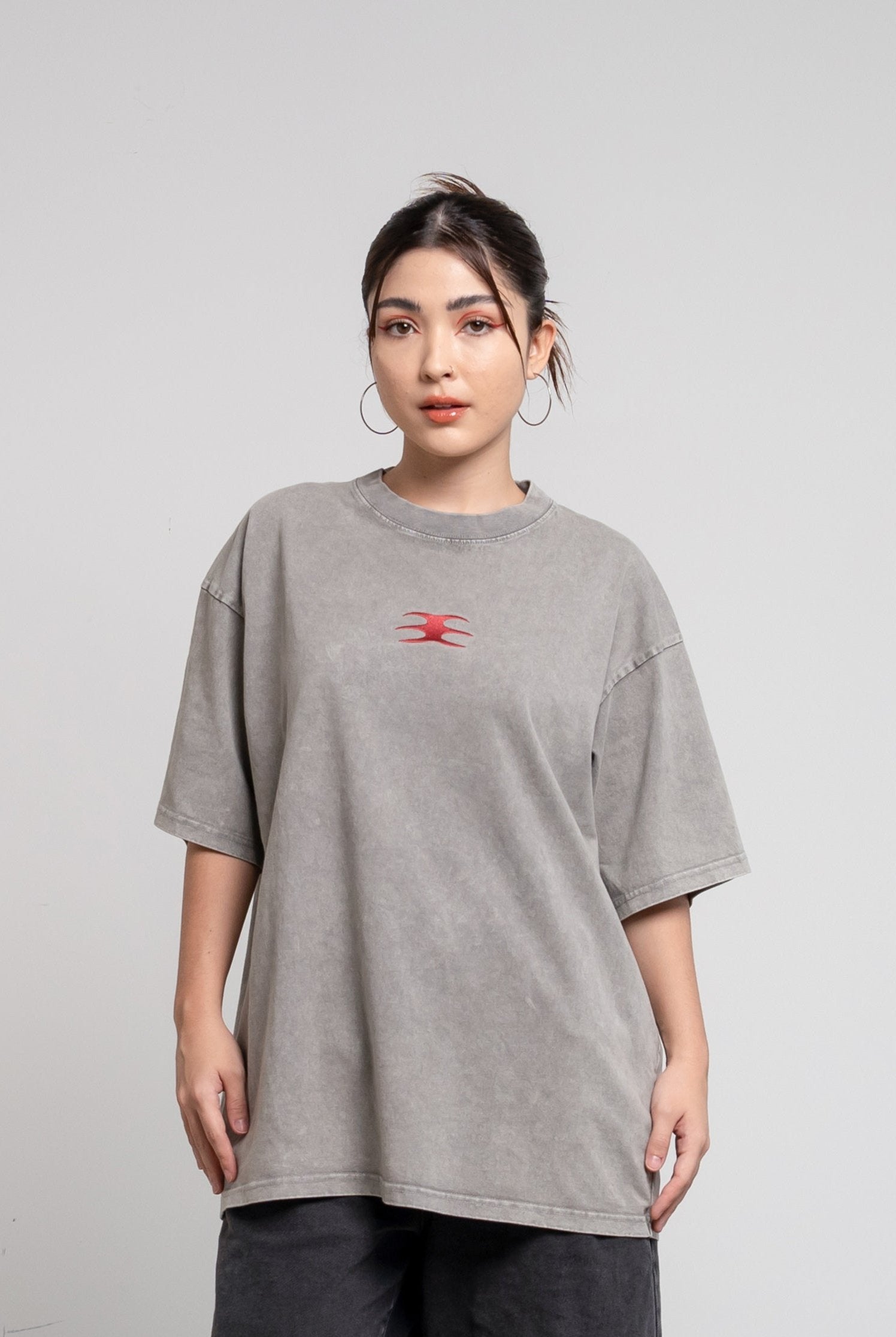 An oversized gray acid-washed cotton top. Crafted for a relaxed, cool look with a comfortable fit.